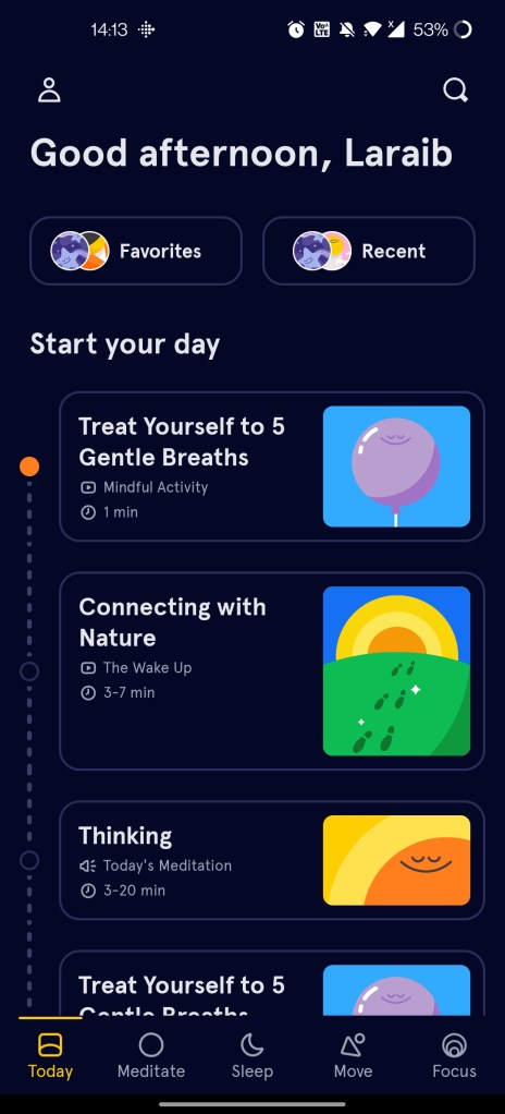 My favourite aspect of the site is that I can easily pick an activity that I need depending on the purpose. They have dedicated sections for sleep, meditation, focus and moving. What’s also great is that the site has a huge community that take part in daily live meditation sessions; it’s so nice feeling like a part of a larger movement.